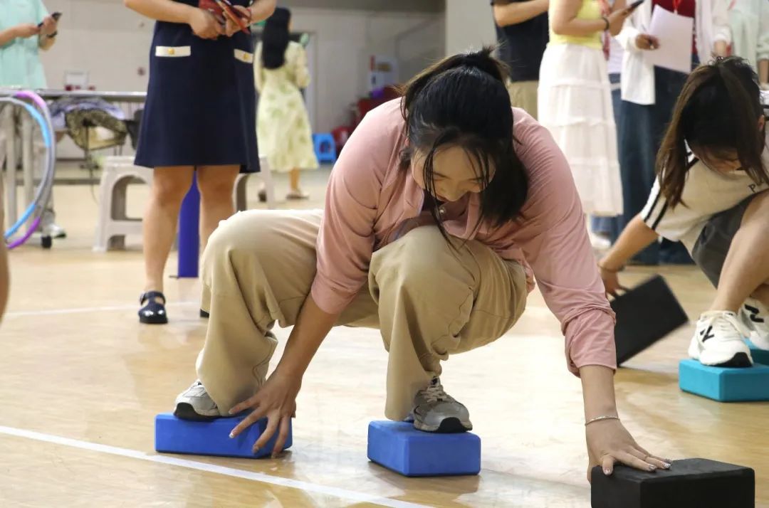 “摸石头过河”环节,参赛者脚踩泡沫砖,小心翼翼地交替移动。即使有的同学落后,也没有丝毫气馁,而是迅速调整状态投入挑战。