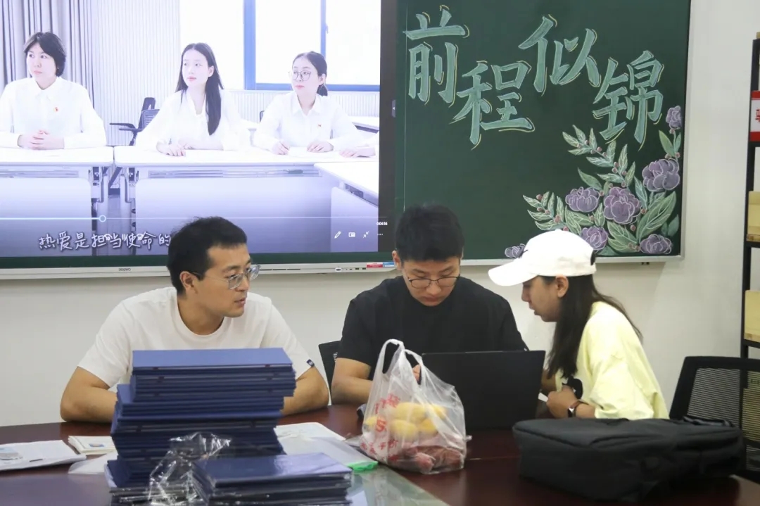 于汇贤楼106会议室开展毕业生派遣工作。学院党委副书记方敏、分团委书记兼学工办主任刘洪、2021级本科生辅导员桑子豪指导并参与现场工作,我院志愿者有序组织开展工作。