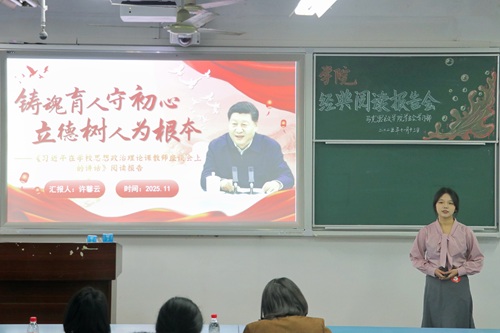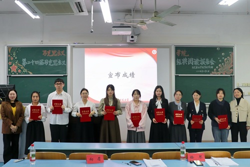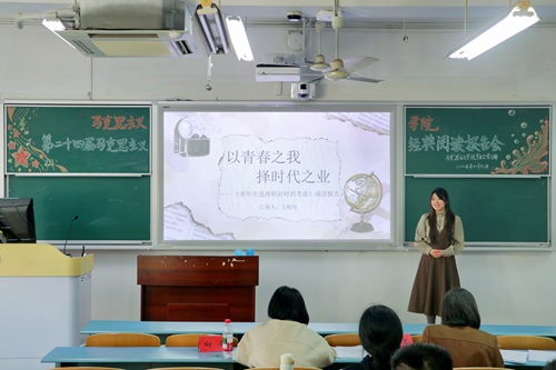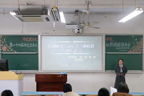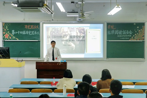 浓厚学术氛围方面的积极作用表示充分肯定,并提出两点针对性建议:一是需进一步扩大活动参与覆盖面,引导同学们从著作背景、核心内容、历史意义、现实回应四个维度研读经典,强化分享内容的逻辑性;二是规避内容的同质化问题,增强演讲的互动性与情感共鸣,深化文献关联分析。最后,两位评委老师表示期待后续能涌现出更具深度、更富内涵的读书报告成果。