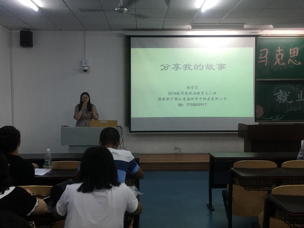 2014级学生黄磊、谢莹莹、林雪梅、杨光瑞作为分享嘉宾。2016级全体学生参与本次活动。
