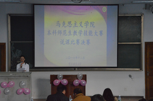 活动伊始,主持人简单地介绍了本次比赛的规则。本次比赛由三笔字、即兴演讲、说课环节三个单项比赛环节构成,其中三笔字比赛环节已于活动前开展评比。