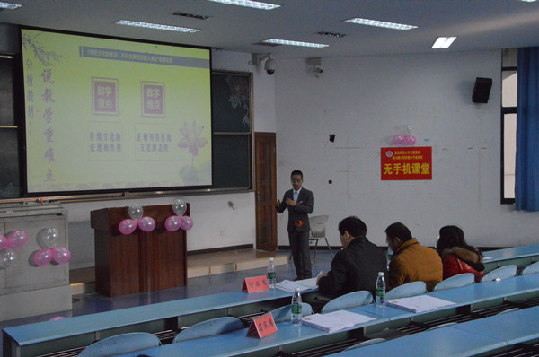在评委点评环节,田方林教授首先肯定了十四位参赛选手的精彩表现,尤其表扬了两位大一选手的表现,鼓励更多的学生积极参加比赛,锻炼自己。其次,田教授针对选手们存在的问题提出了建议,他提醒选手们注意演讲语言的连贯性和逻辑性,重视对教材本身的深度挖掘,避免说课时的平铺直叙,强调语音语调的变化等。评委点评结束后,主持人公布了获奖名单。三号选手胡海鹏和九号选手唐婷婷获得一等奖,其他选手分获二等奖和三等奖。