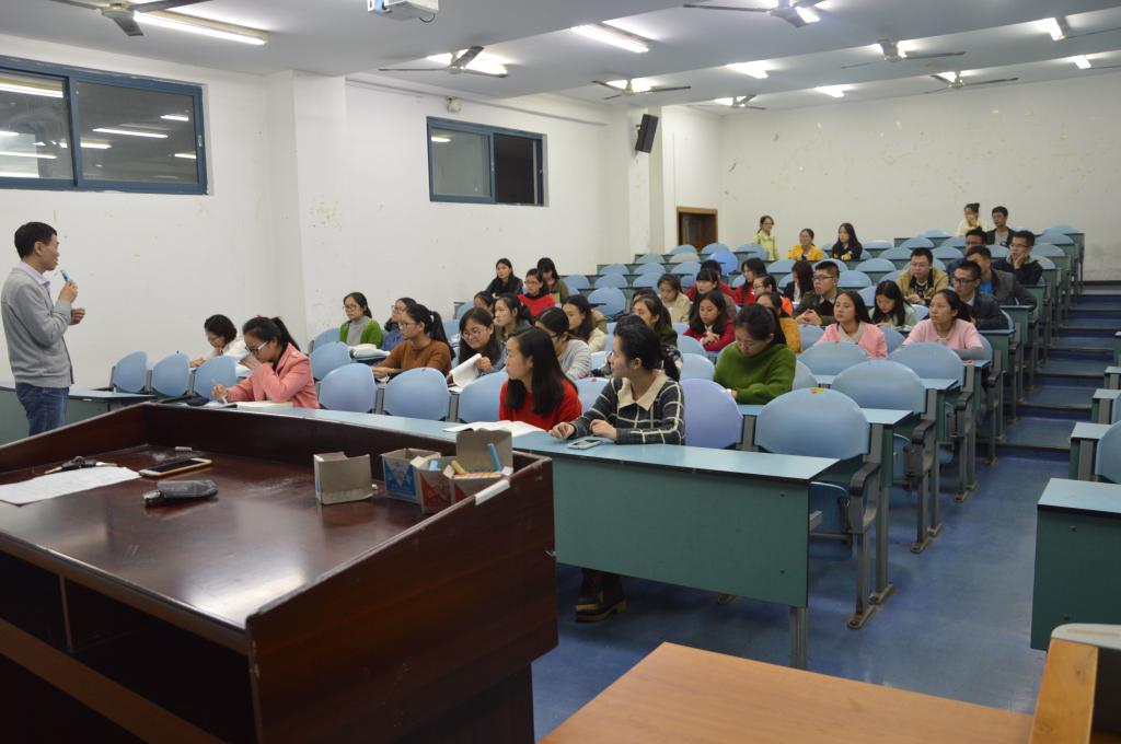 党委副书记姜土生博士在弘德楼5201为考研学生开展讲座,对他们进行考前辅导。 2013级辅导员张晓庆老师出席本次活动。