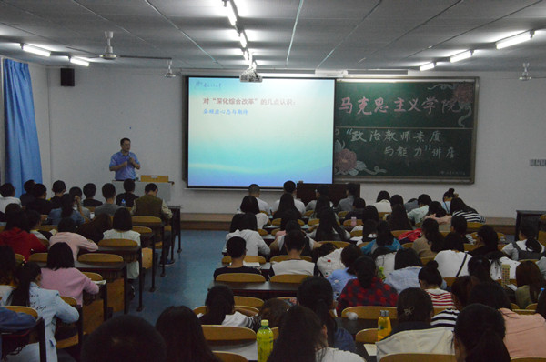 于2016年9月25日19时30分在励志楼2410教室举行了新生入学教育——中学政治教师素质与能力要求专题讲座。本次讲座特邀重庆三十七中校长伍平伟担任主讲嘉宾。2016级全体学生参与。