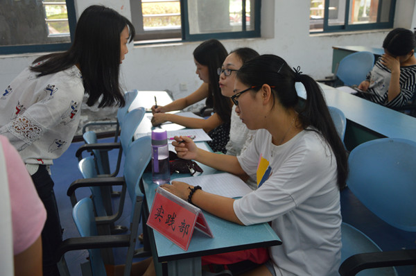 在招新过程中,2016级新生根据自己的特长和兴趣爱好,通过自我介绍、才艺展示、回答问题等方式来展示自我能力,并选择心仪的部门进行面试。各部门负责人认真考察面试同学的现场应变能力和口头表达能力,不断鼓励新生大胆展示个性和风采,并对他们提出培养各自优秀的思想道德素养和与时俱进的创新精神的要求。招新现场如火如荼,也井然有序。