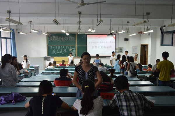 此次竞选包括部长竞选和副部长竞选两个部分。在部长竞选环节,竞选者从工作计划、管理方法等方面进行了慷慨激昂的竞职演讲。在展示自身能力的同时,也表达了服务同学的意愿。继而马老师及第七届团总支·学生会主席、书记针对竞选者存在的问题以及今后对部门管理的方式等方面进行提问,竞选者有条不紊地回答。