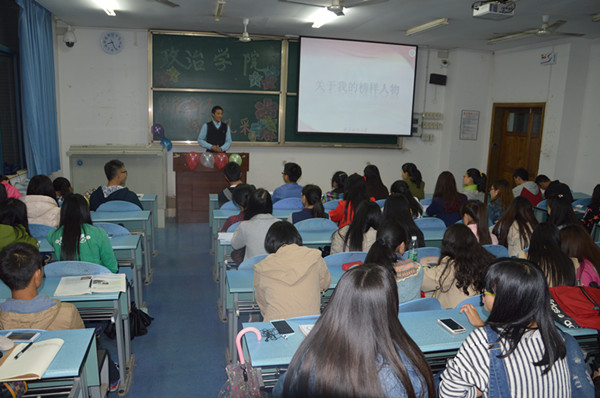 2013级、2014级分别于2015年4月6日18:00和2015年4月6日20:00,在弘德楼5201教室开展以“立德树人·榜样风采”为主题的班会活动。辅导员张晓庆出席,2013级、2014级全体同学分别参与。