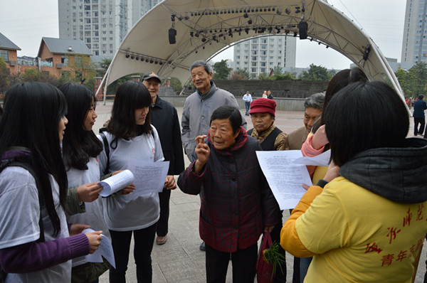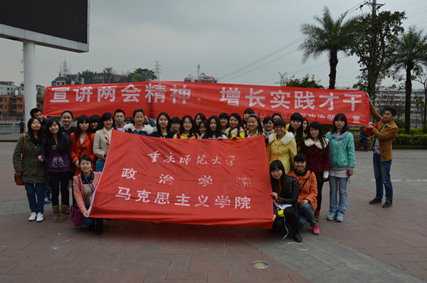 下午两点半,志愿者们乘坐公交车到达学府广场,设点展示和发放活动图片资料,并安排人员进行介绍。活动分为“聚焦两会胸怀使命”两会政策宣讲和“惠民普法”法律常识咨询两大板块:第一板块中,志愿者们有针对性的选取两会中最新惠民政策,如“更加重视人的城镇化”、“完善社保体系”、“收入分配改革再发力”在社区进行宣讲和解读,使得居民能够更好了解当前政策的便民性、惠民性。第二板块中,志愿者们宣传的法律知识重点选择在易发生在居民生活的法律误区,通过实例形象生动的向社区居民解读法律常识,使他们更好的了解法律。社区居民们也热情地与志愿者们进行交流沟通。下午五点,志愿者们与当地居民留影纪念,社区志愿服务活动圆满结束。