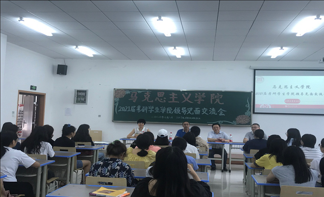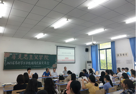 领导见面交流会,为备考学生加油鼓劲。此次交流会由2017级辅导员马小又老师主持,党委书记刘军、院长陈洪以及党委副书记方敏出席活动并作分享交流。