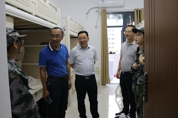 领导及老师与2020级新生亲切交流。陈院长细心询问新生对大学环境是否习惯,生活上是否尚存困难,耐心地为新生解疑答惑。在了解到新生们对于接下来的军训生活感到担忧时,陈洪院长鼓励他们:军训是大学的第一课,也是一种历练,同学们要以积极乐观的心态,在军训中锻炼意志品格,并将军训所练就的坚毅品质融入到大学学习生活中去。