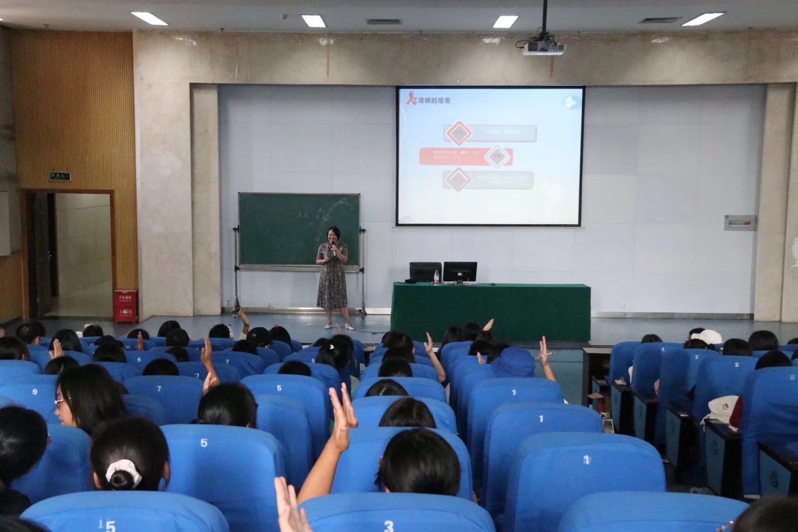 刘涛老师通过大量真实的案例和数据,向大家介绍了艾滋病的有关知识以及其影响危害。同时,对其防护的方法做了深刻的诠释,提出了三种防治艾滋病的方法,以及时地预防艾滋病。最后刘涛老师殷切寄语同学们认真学习和掌握的艾滋病防治知识,关爱艾滋病患者,共筑抗艾坚固防线。