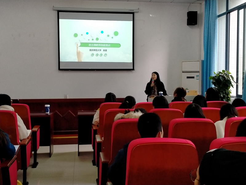 本次培训活动,吴涯老师从“教姿教态把握”、“试讲教学内容选择”、“导入技巧”和“课堂教学总结”四个方面展开讲解,活动过程中师生互动积极,氛围活跃。