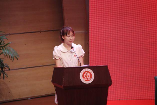 随后,毕业研究生代表赵亚玲上台发言。赵亚玲同学以“选择”“奋斗”“平凡”三个词汇概括自己认识自我、悦纳自我、坚定自我的经历,并寄语在场的学弟学妹,“继续向下扎根,向上生长,去谱写属于你们的青春和骄傲”。