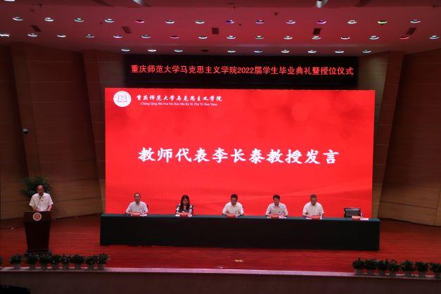 紧接着,教师代表李长泰教授发言:第一,同学们的马克思主义学习经历丰富了校史,拼搏奋斗的精神将永载校园史册;第二,同学们的工作深造将赓续和实践家国天下观,要始终以诚为本,以勤为路,熊猫体育