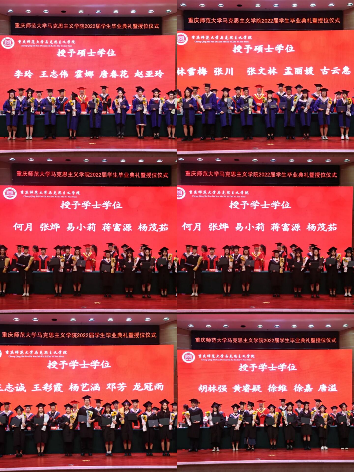 领导、老师的栽培之恩,毕业生代表为在座嘉宾、老师献花。在短暂的休息之后,进入议程第二阶段:2022届毕业生学位授予仪式,由院党委副书记方敏主持。由主席台就座嘉宾为获得硕士、学士学位毕业生拨穗并颁发学位证书。