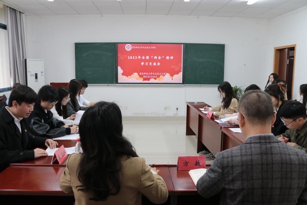 于汇贤楼309教室召开2023全国两会精神学习交流会。学院党委副书记方敏、分团委书记刘洪、2021级本科生辅导员桑子豪出席本次座谈会,学生干部代表、各年级学生代表、协会代表到场认真学习。