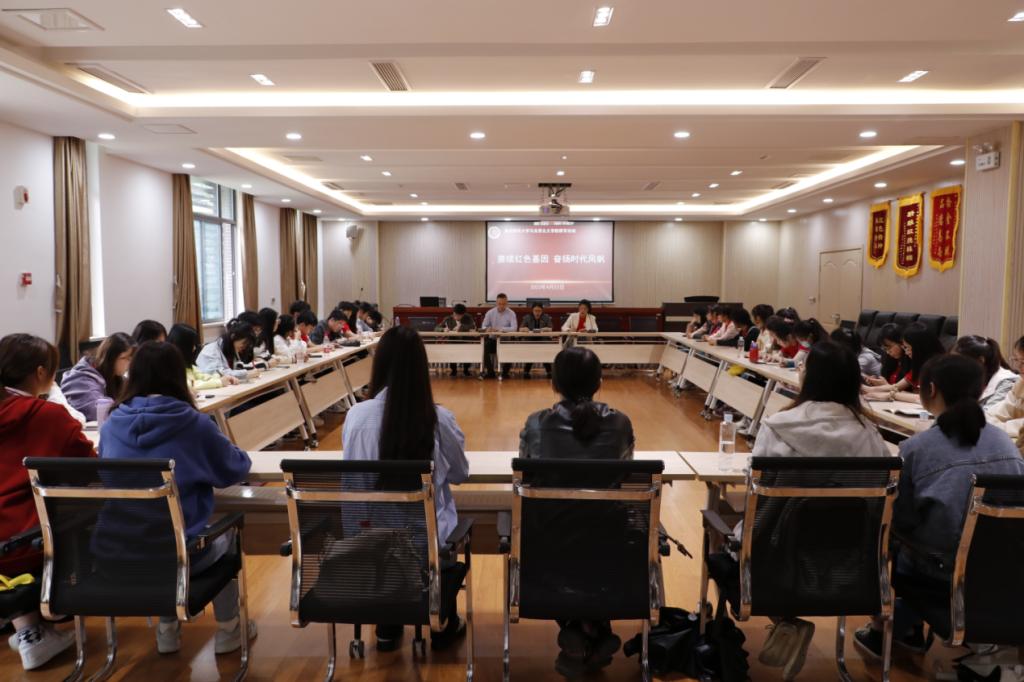 兰桂萍副教授作为特邀嘉宾出席本次研讨会,并以《红岩精神政治品格的历史诠释与当代传承》为题进行领学分享。紧接着,研学团成员吴旺学、董江鑫、柴星宇依次从赓续红色血脉、坚定理想信念、增强政治素养角度出发,向在场师生分享此次研学感悟。