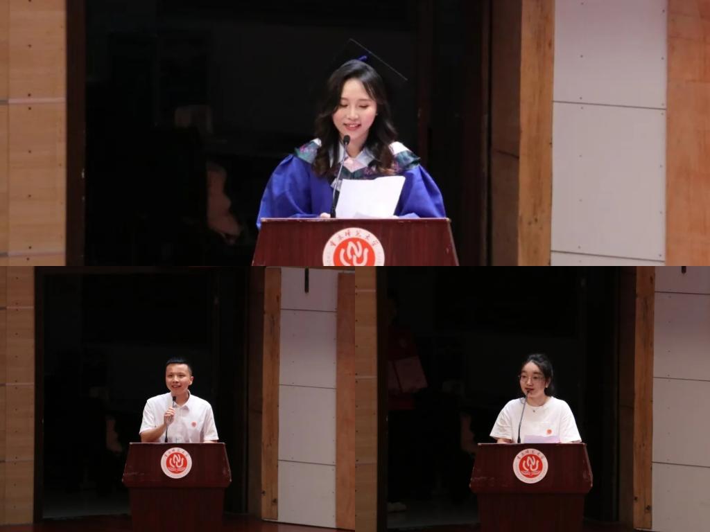 典礼第四项议程,优秀毕业生和低年级学生代表相继上台发言。
