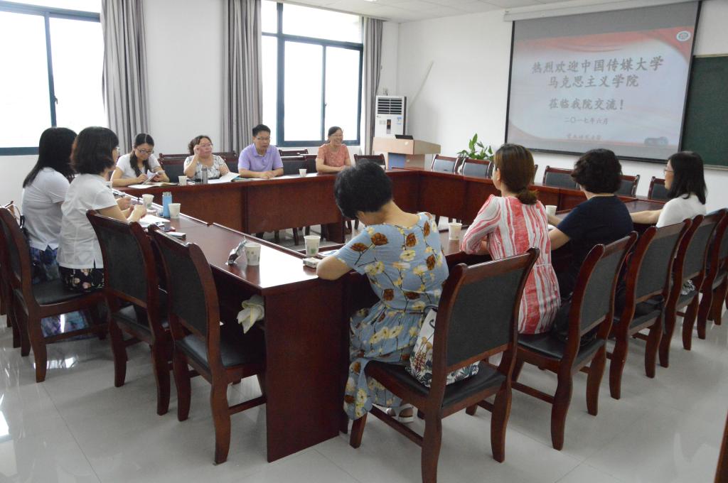 为加强熊猫体育 和中国传媒大学熊猫体育 的联系,促进双方的学习与交流,201775日,中国传媒大学熊猫体育 思想政治理论课教研室主任马成瑶教授等一行7人莅临熊猫体育 进行交流考察。交流会在汇贤楼309举办,熊猫体育 院长吴晓燕教授、教务处副处长杜斗恒副教授、思想政治理论课教研室主任孔庆茵副教授、副主任兰桂萍副教授、熊猫体育 院长助理王勇教授参与此次交流。
