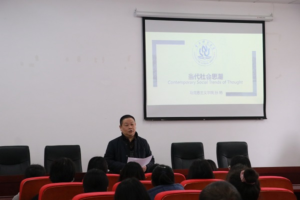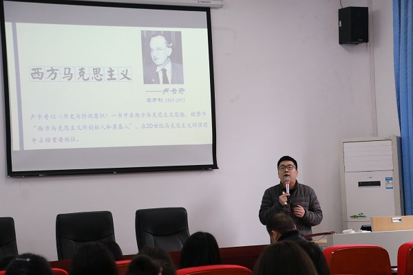 首先,校级课程思政“当代社会思潮”负责人孙杨老师展示了教学示范观摩课。他从物化的规定性与具体表现形式入手,分别阐释了马克思所说的“物的异化”和“人的自我异化”两个概念,并阐释了人的抽象化和数字化的概念,从而引出关于卢卡奇物化与马克思异化的思考。