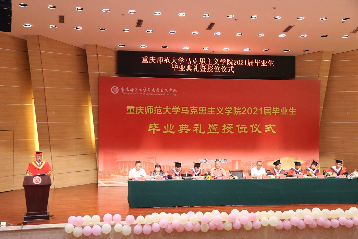 仪式结束,孟东方校长发表讲话。孟校长对毕业生致以真挚的祝福,并期望同学们要有活到老学到老的“学气”、板凳干做十年冷的“静气”、不断锤炼自我的“勇气”、涵养名师名家的“大气”。希望同学们笃定专业自信,自觉做坚定的马克思主义学习者、信仰者、捍卫者、传播者和事业者,坚持学以致用,不断涵养重师人的文化基础。把自己的理想同国家前途、民族命运紧密联系起来,扎根人民,奉献国家,拥抱新时代,走向新未来。