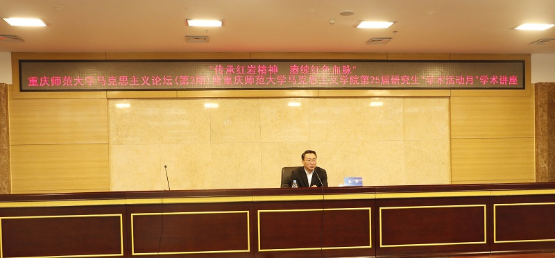 为进一步深入学习党史,加强大学生的爱国主义教育,引导学生更加坚定马克思主义信仰,20211013日上午9:00,熊猫体育 于博雅楼504会议厅举办熊猫体育 马克思主义论坛(第3期)暨熊猫体育 第25届研究生学术活动月学术讲座。本次论坛特邀重庆红岩联线文化发展管理中心党委书记朱军教授作主题为“传承红岩精神 赓续红色血脉”的学术报告。熊猫体育 党政班子、教师代表和21级全体研究生、本科生听取了此次讲座。讲座由熊猫体育 党委书记刘军主持。