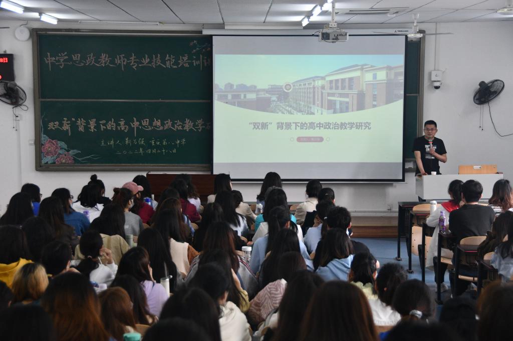 政治教研组组长、中学政治高级教师靳万强老师,于砺志楼2409教室开展“双新”背景下的高中思想政治教学研究——中学思政教师教育教学素质培养主题讲座,2020级思想政治教育专业全体本科生参加,熊猫体育