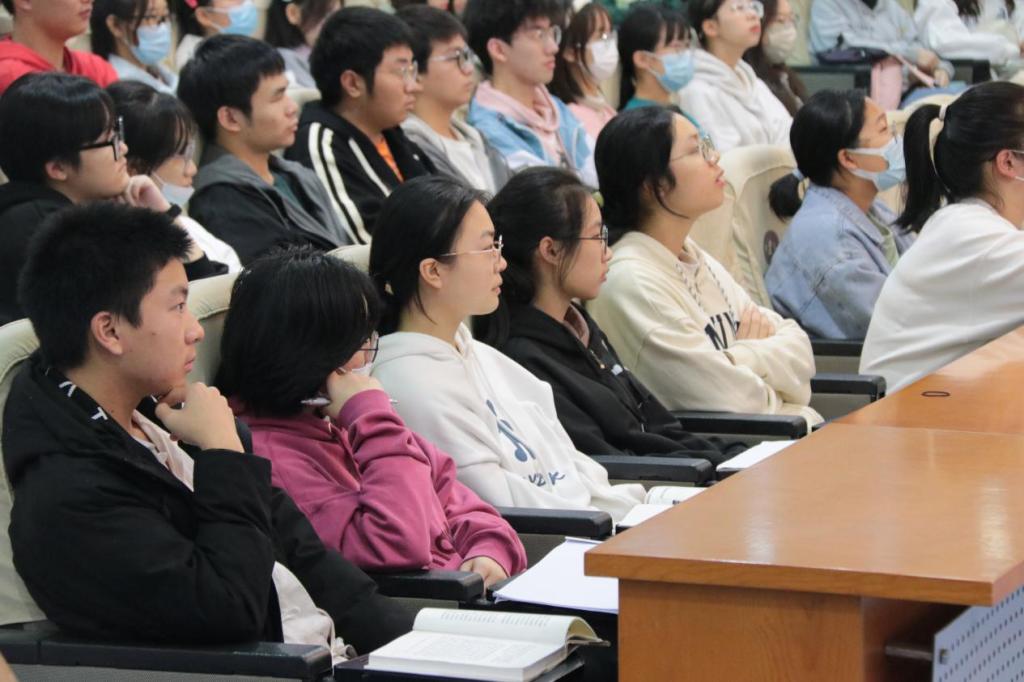副院长姜土生及分团委书记刘洪老师出席本次交流会,2022级全体本科生、部分研究生积极参与、认真聆听。