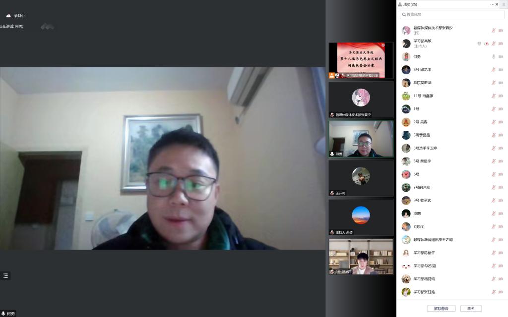 何勇老师则从“读原著、取原文、悟原理”的角度展开点评,他对于同学们阅读经典原著,感悟原著力量,提升思想素质的积极性表示高度赞赏,并寄语同学们要保持阅读经典的好习惯,促进自身理论水平的提高。