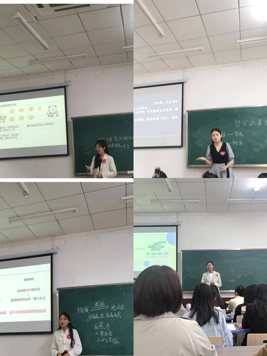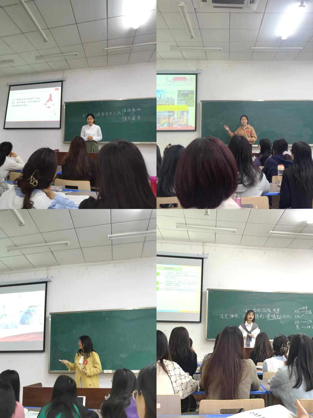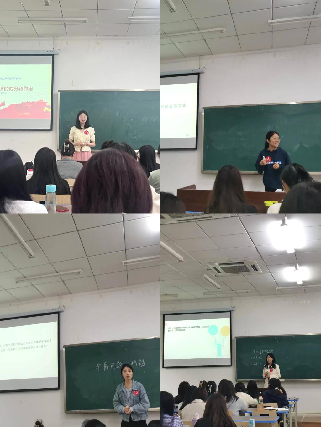 参与比赛的15名选手是微格实验各小组推荐的代表,按照抽签顺序依次进行教学展示。选手们带来了《党的性质与宗旨》《发挥共产党员的先锋模范作用》《联系的客观性》《新时代我国社会主要矛盾》《法定继承》等众多教学节点的模拟授课。他们课件制作精美、内容讲述深刻、语言表达流畅、板书设计新颖,这场比赛给了大家又一个学习提升的机会。