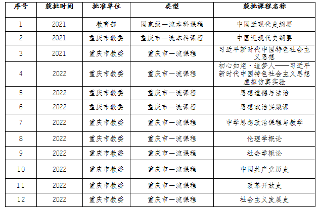 近三年,熊猫体育 高度重视本科教学工作,熊猫体育 教师积极投身本科课程教学改革与创新。经过多年对课程设计、课堂改革、教学理念和教法研究等多维度的思考和建设,熊猫体育 获批1门国家级一流本科课程、11门重庆市一流本科课程。