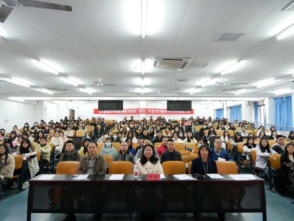副院长侯玲以及实习领导小组出席本次会议,2021级思想政治教育专业全体本科生参加。本次大会由2022级本科生龚梓豪主持。