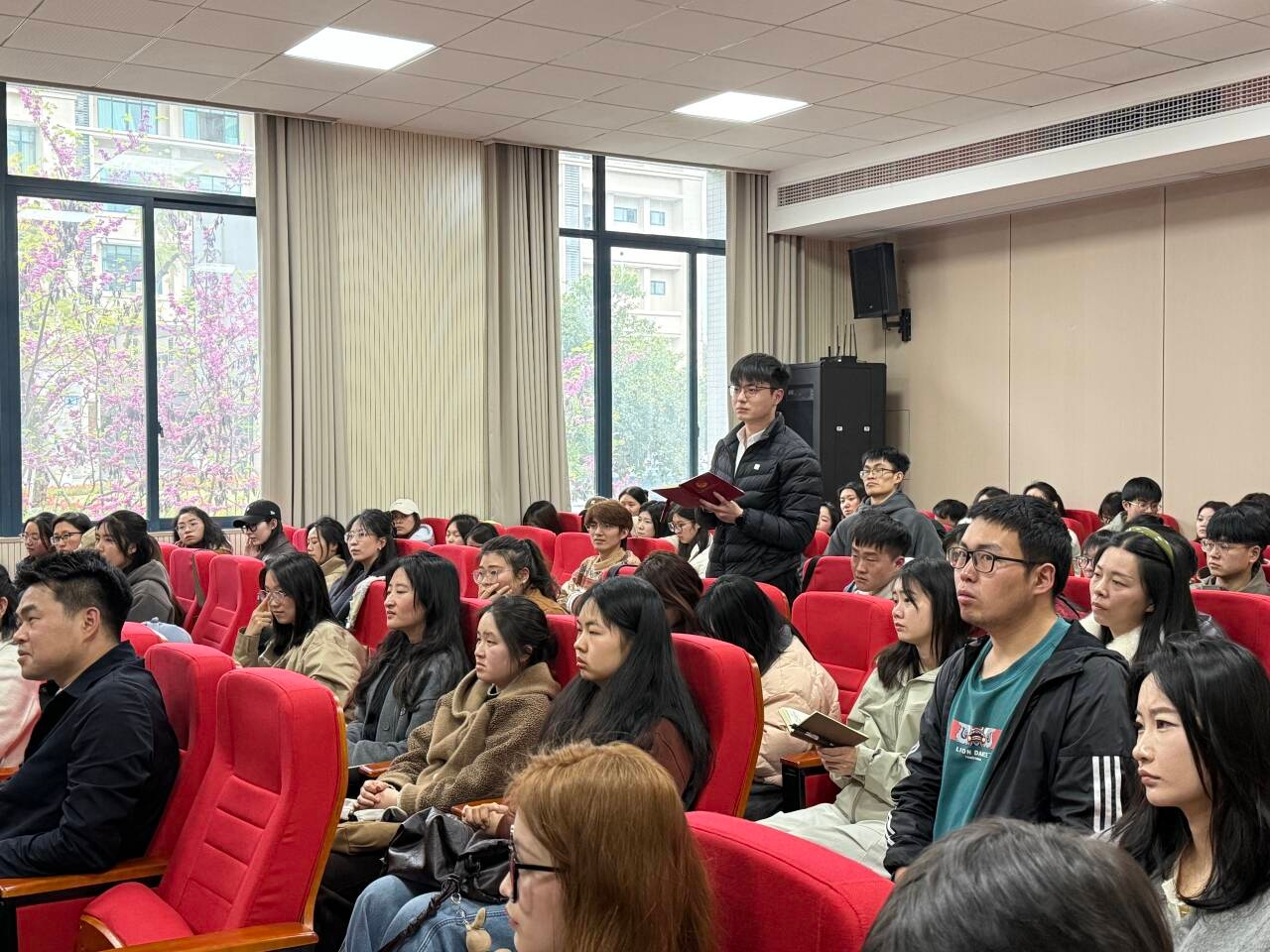 会议尾声,进入提问环节。针对同学们提出的”如何结合自身论文写作与文献研读的困惑”,梅教授强调以自我论述为主、文献为辅。关于“阅读专一性与广泛性的关系”,他主张泛读与精读结合,在广泛涉猎中深耕核心著作,读深读透以夯实理论根基,形成稳定深刻的研究方向。